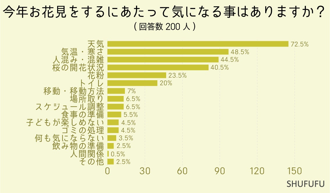 特にお子さんや高齢の家族とお花見に行こうとしている方は、低い気温の中でお花見をするのに不安があるようです。