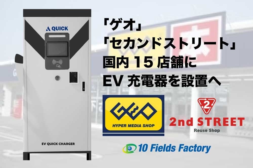 ゲオグループ、テンフィールズファクトリー株式会社と提携 ゲオ、セカンドストリート店舗へEV充電器を導入