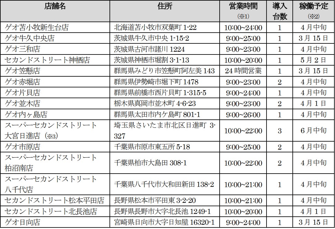 (※3)スーパーセカンドストリート大宮日進店は、設置済みEV充電器を撤去後、