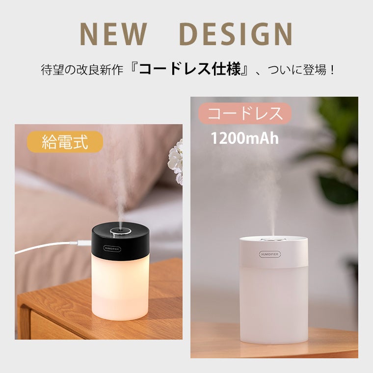 乾燥対策の新基準!600ml大容量&コードレスの次世代卓上加湿器を新発売