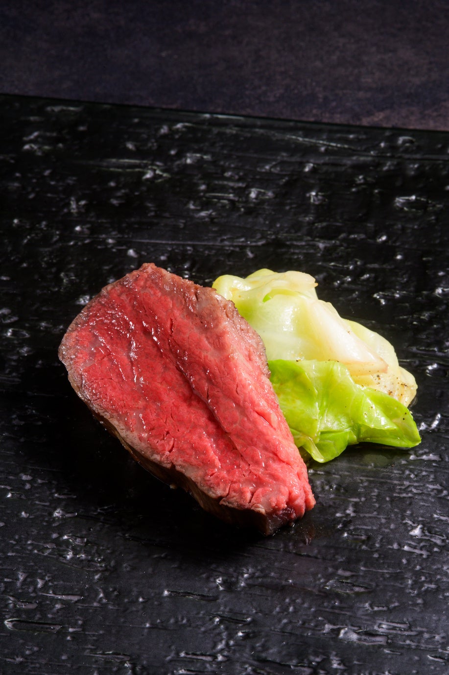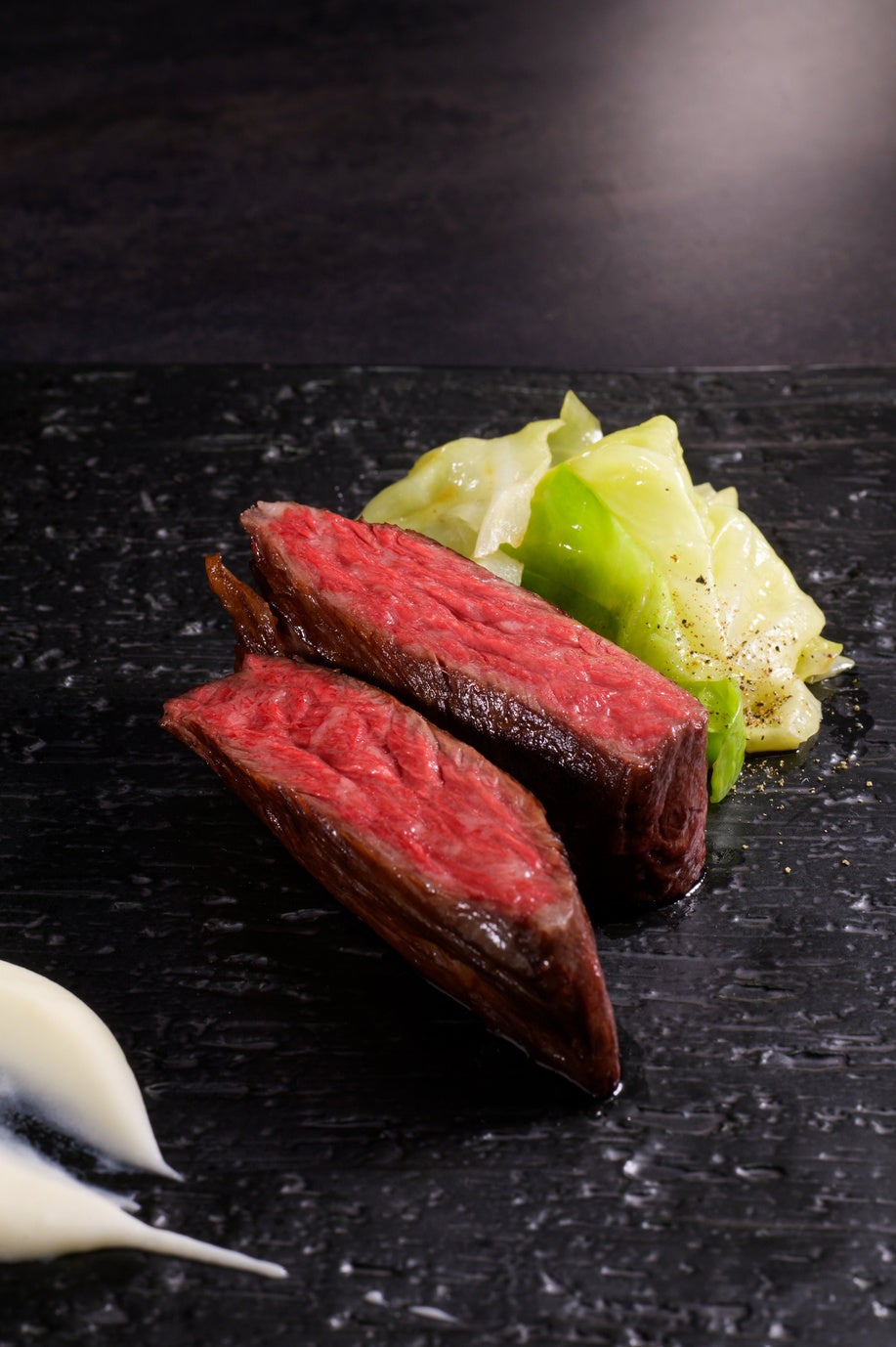 青森県五戸町産・A4ランク倉石牛を、京都「CAINOYA」塩澤隆由シェフ監修のもと、中心温度52℃で究極の火入れ施した感動のステーキです。