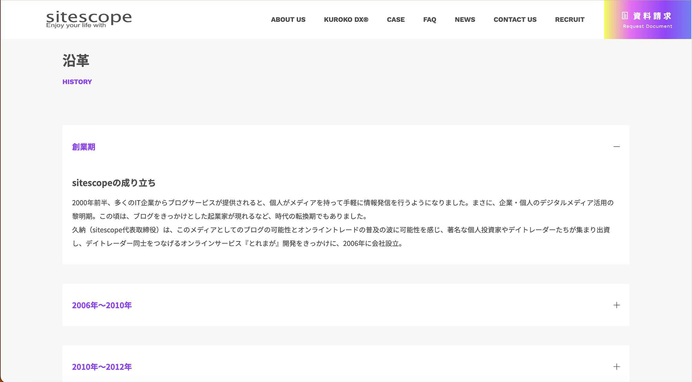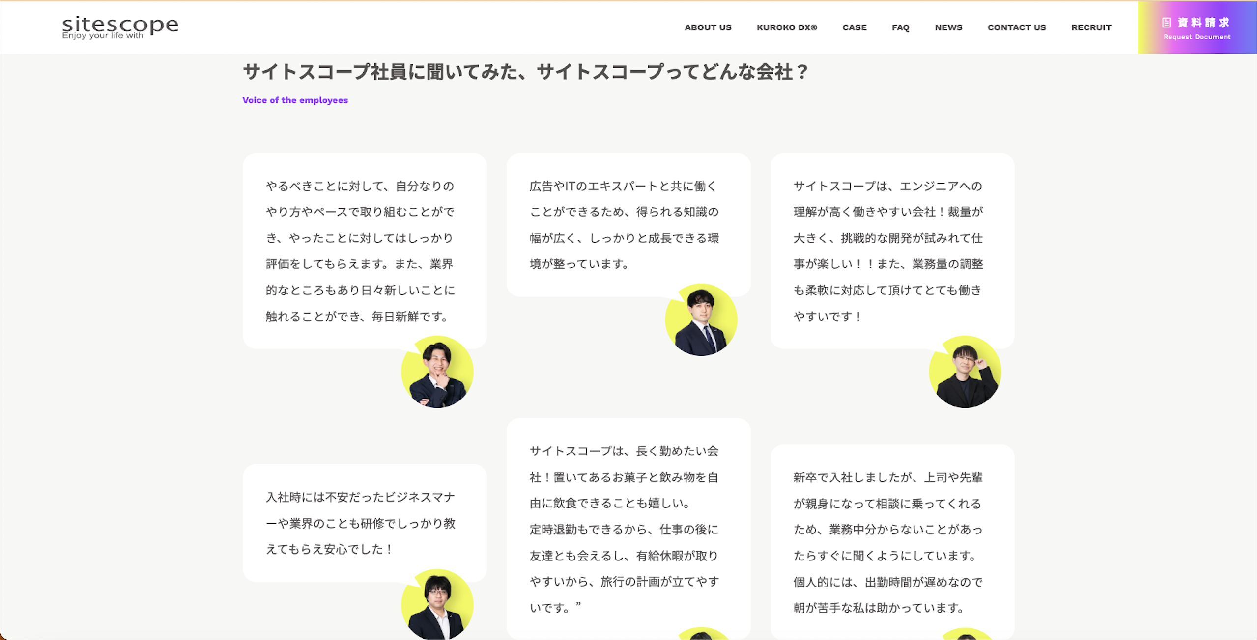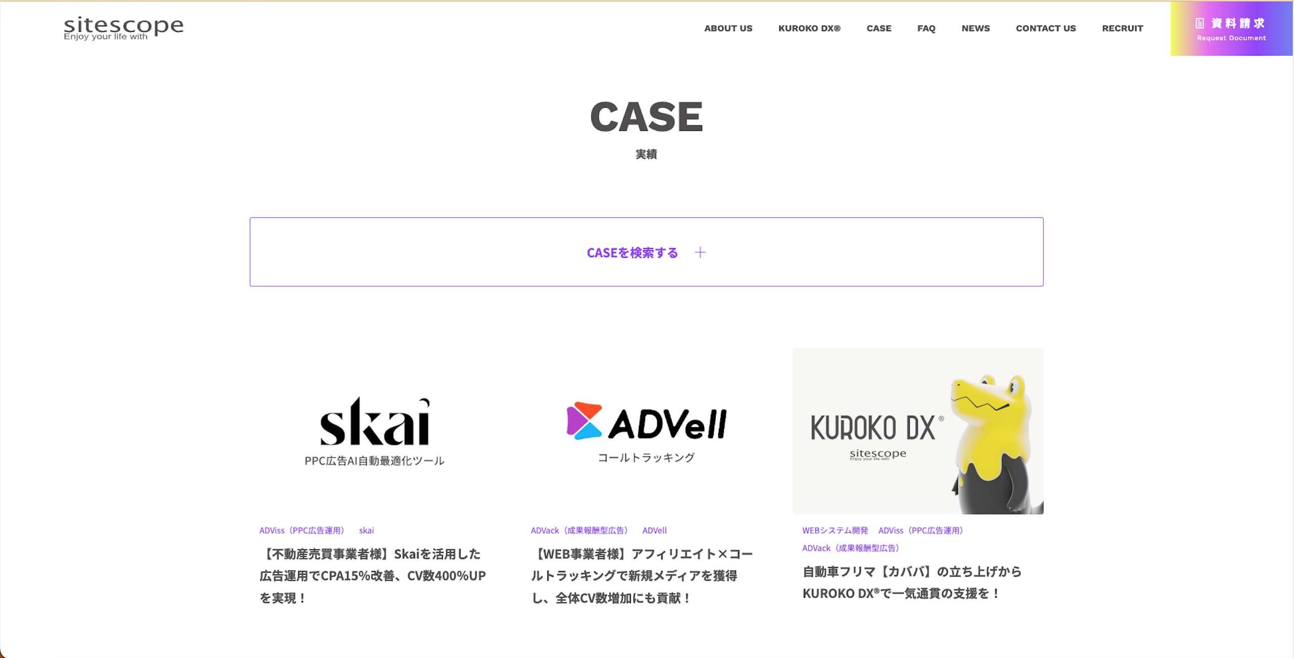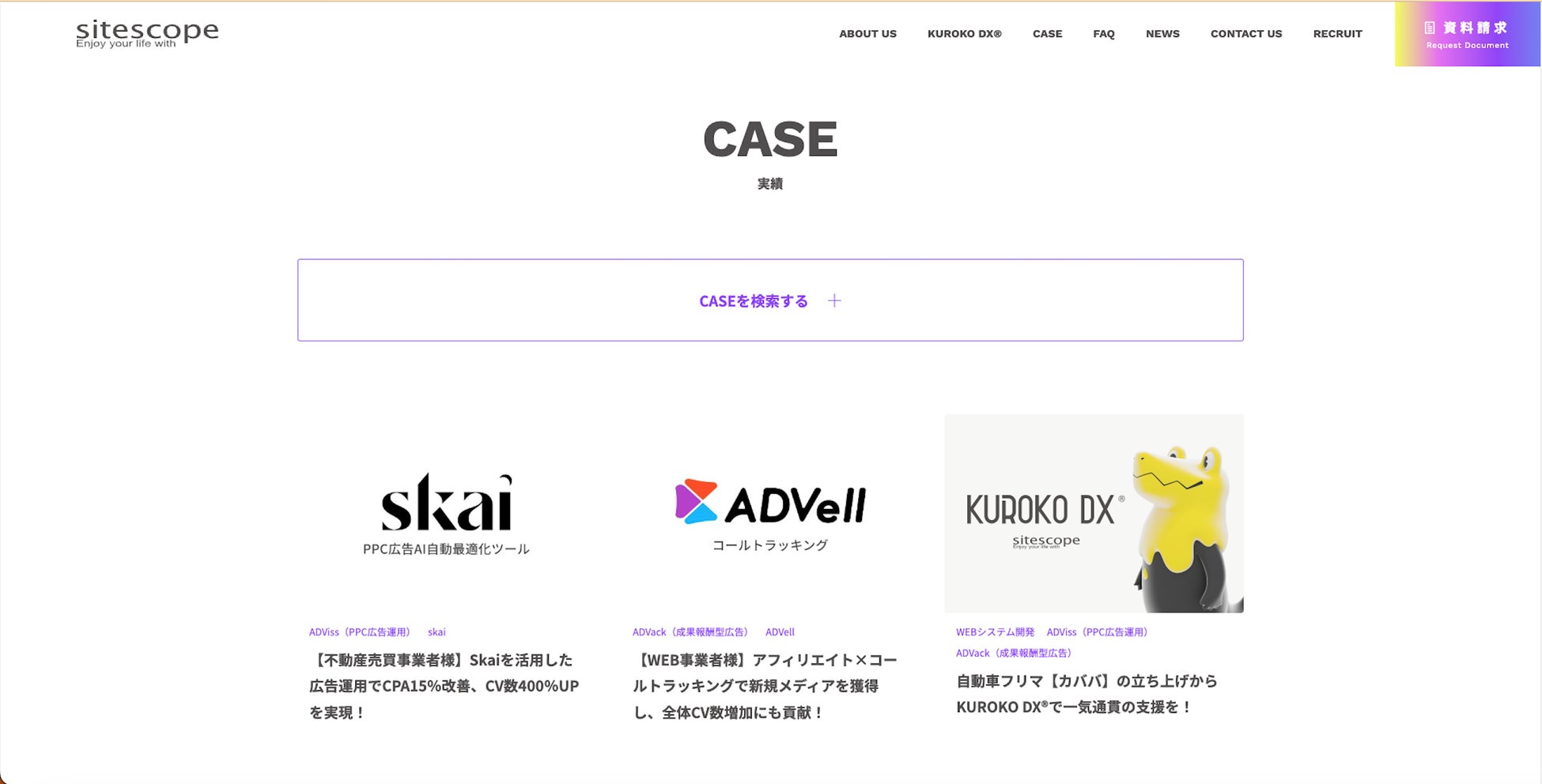 サイトスコープが行ってきたDX支援の一部を確認できるCASE(実績)ページを追加。