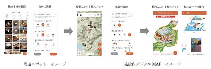 2つの機能により旅前では、周遊プランの検討や施設設備の確認・予約、旅中では気分や状況に応じた寄り道先の検討など旅前~旅中まで継続して利用ができ、箱根エリアの新しい周遊を提案することにより、エリアの活性化を図りながら密を避けた新しい観光体験の提供の実現を目指します。
