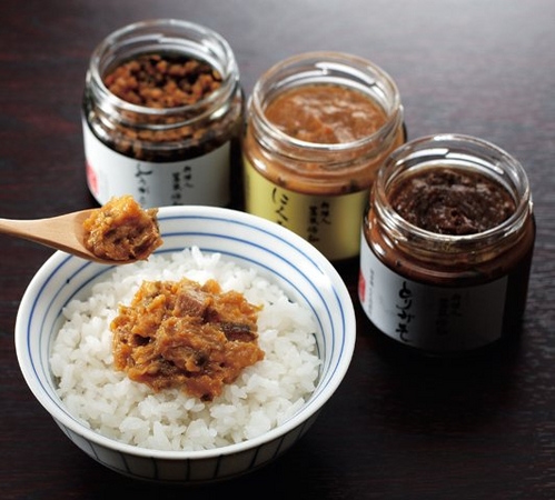 「とりみそ」「にくみそ」「しょうがこんぶ」の3種セット。