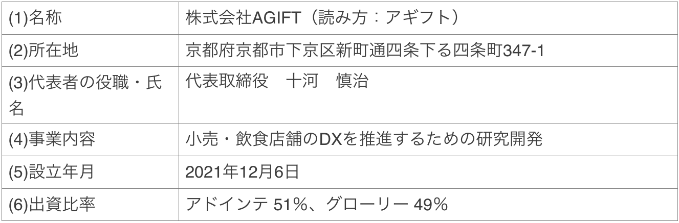 【アドインテ】グローリー株式会社からの追加出資及び合弁会社(株式会社AGIFT)設立に関するお知らせ。