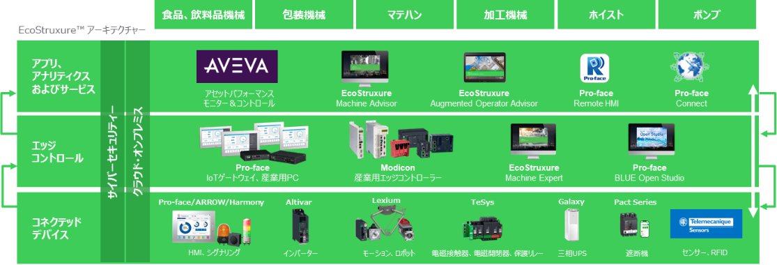 シュナイダーエレクトリックは、これまでもアヴィバのソフトウェアソリューションを提供してきましたが、市場ニーズの高まりを受けて、この度アヴィバの日本におけるセレクトパートナーとなる契約を締結し、アヴィバのソフトウェア製品の提供体制を強化しました。シュナイダーが世界的に展開するIoTプラットフォームアーキテクチャ「EcoStruxure」の“アプリ・アナリティクスおよびサービス”層にアヴィバのソリューションを組込み、“コネクテッドデバイス”層や“エッジコントロール”層にIoTソリューションブランド「Pro-face」のプログラマブル表示器、産業用コンピューターなどを組み合わせて提供することで、デバイスからネットワーク、OTからITまでのシステムを一気通貫で構築することが可能となります。今後、シュナイダーが持つ日本国内の製造業界向けの販売ネットワークを、アヴィバのソフトウェア製品の拡販に向けて活用し、日本国内における製造現場のDX推進を支援します。