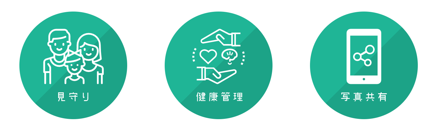 写真共有やメッセージのやりとり、また脳トレの対戦など、離れていても家族全員で喜びや楽しみを共有できます