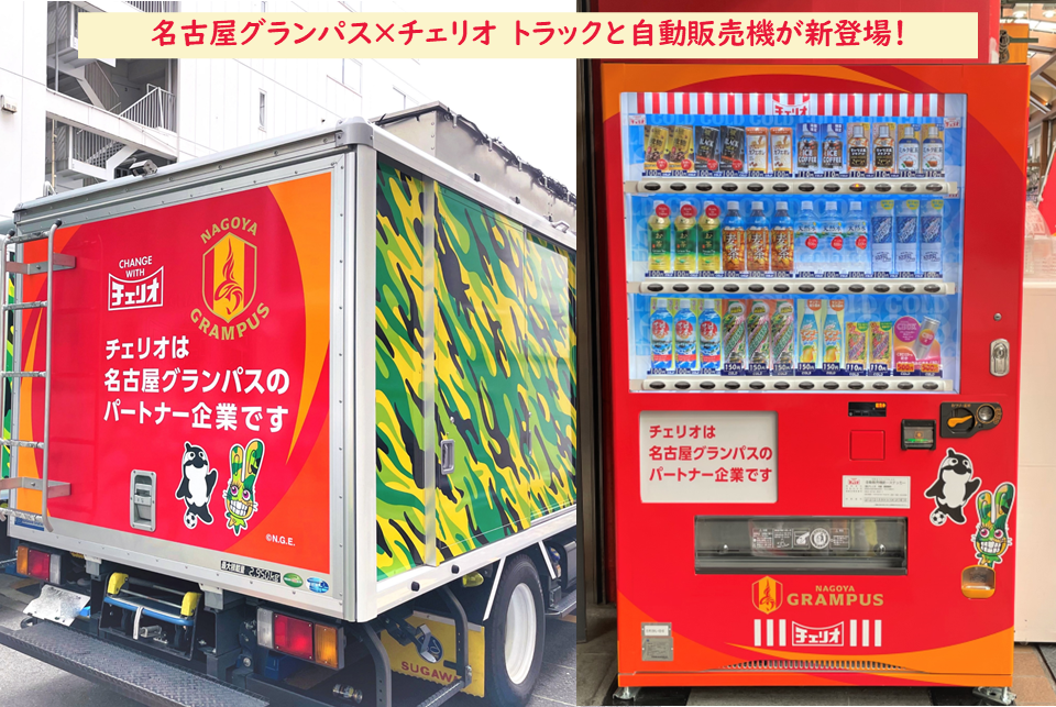 「チェリオ自動販売機」、「LIFEGUARD」でお馴染みのチェリオグループは、東海エリアにて60年以上に渡って「おいしい、たのしい、あたらしい」飲料の製造販売を行ってまいりました。愛知県の小牧工場等で製造した安心安全な飲料を販売する「チェリオ自動販売機」は、価格帯にこだわり、世代を超えた多くのお客様からご支持を頂いております。 当社は名古屋グランパスの『「町いちばん」のクラブ』というビジョンの元、地域イベントへの参加、子どもたちとのふれあいイベントの開催、清掃活動などのSDGsに基づく積極的な地域活動に共感し、パートナー契約に至りました。東海地域を盛り上げてきた名古屋グランパスを応援すると共に、チェリオは地元の皆様と一緒に!サポーターの皆様と熱く!地域社会の発展に寄与してまいります。