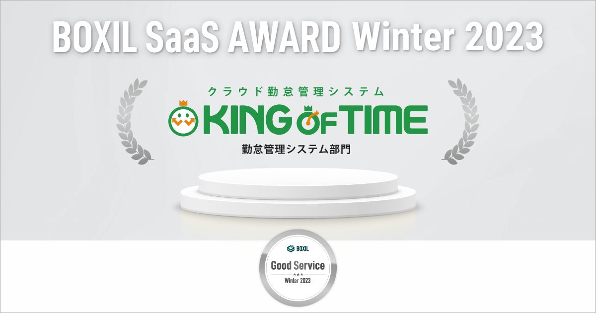 勤怠管理システム「KING OF TIME」が「BOXIL SaaS AWARD Winter 2023」の勤怠管理システム部門にて「Good Service」 を受賞