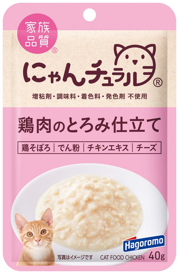 はごろもフーズ株式会社(本社:静岡県静岡市 社長:後藤佐恵子)は、必要最低限の添加物・嗜好剤のみを使用した猫用フード「にゃんチュラルパウチ 鶏肉のとろみ仕立て」を発売します。