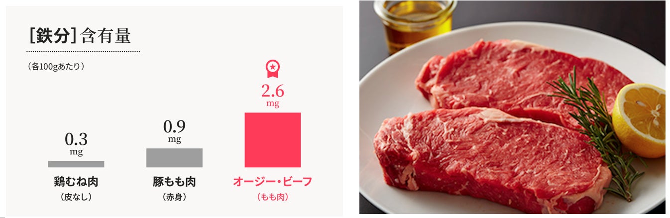 【女性の健康と美容に欠かせない、たんぱく質、鉄、亜鉛を含む赤身が特徴のオージー・ビーフで元気に】
