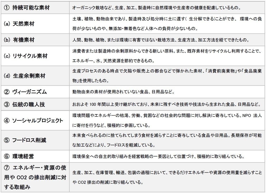1.独自に掲げた7つの「サステナブル」に該当する商品を全国から取り寄せ
