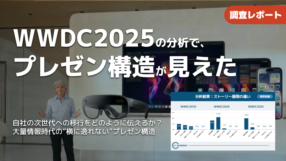 本稿では、その枠組みを踏まえつつ、WWDCの最新回であるWWDC2025を分析し、「情報をどう届けるか」に加えて「何を主線に置いて語るか」という観点から、プレゼン設計上の要点を整理します。