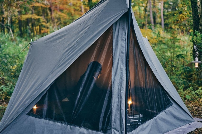 メイン素材にはコットンとポリエステルの混紡繊維を使用。巻き上げ可能なスカートもついており、冬場は暖かい空気を保つことが可能です。 また、前面と後方パネルをメッシュにでき、夏場でも涼しく過ごせます。自分だけのプライベート空間、テント内から広がる風景をお楽しみください。