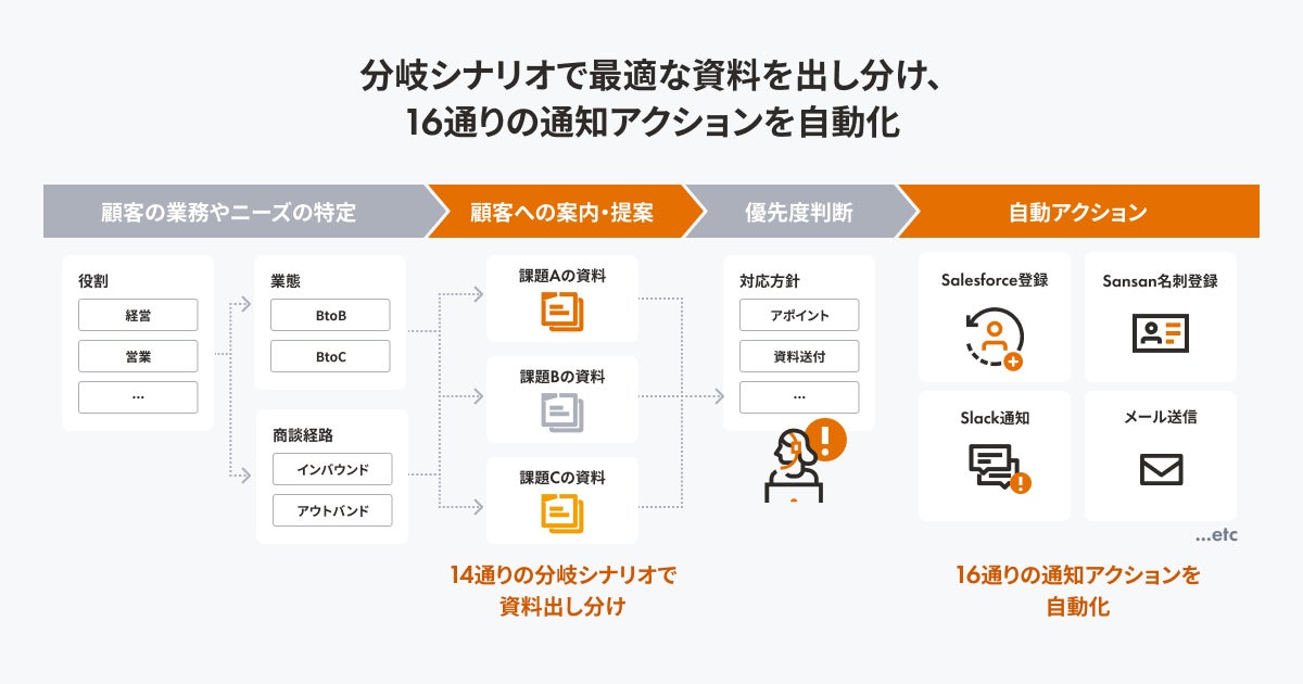 ■14通りの資料出し分けシナリオと16通りの通知アクション自動化により展示会オペレーションの効率を大幅改善