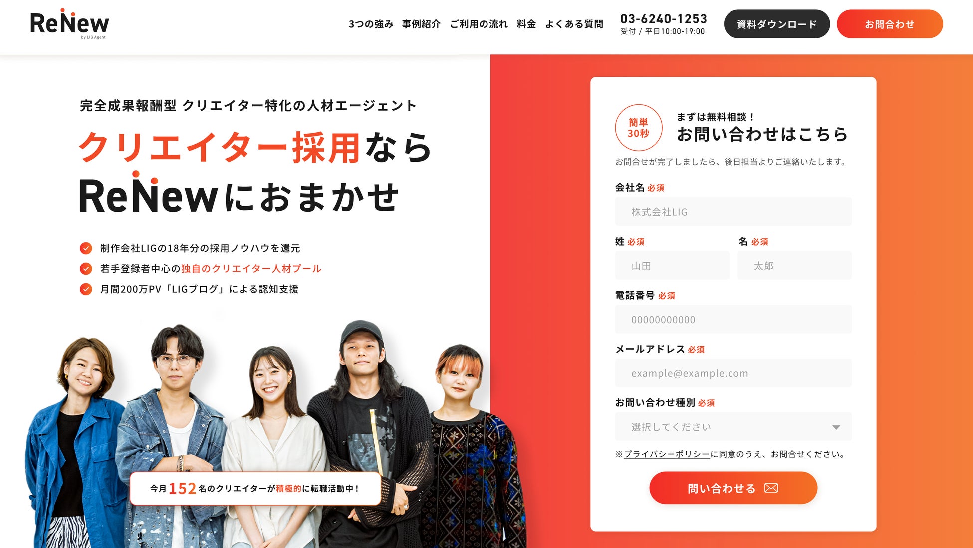 Web制作会社LIGがクリエイター特化型転職エージェント「ReNew」をリリース