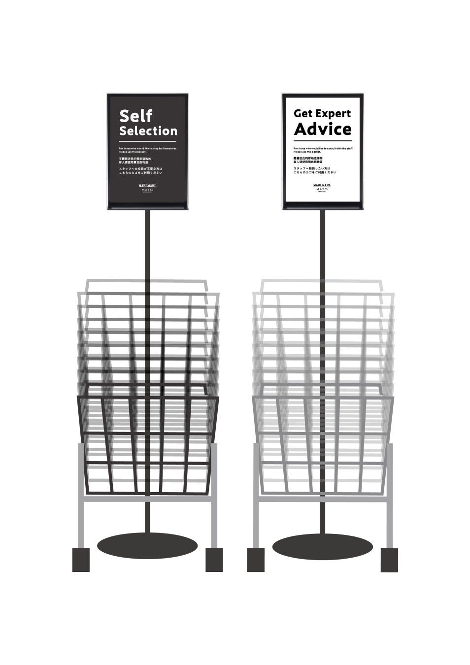 また、接客の必要・不要を意思表示できるカゴを設置し、必要としているお客様へダイレクトに情報を届けます。