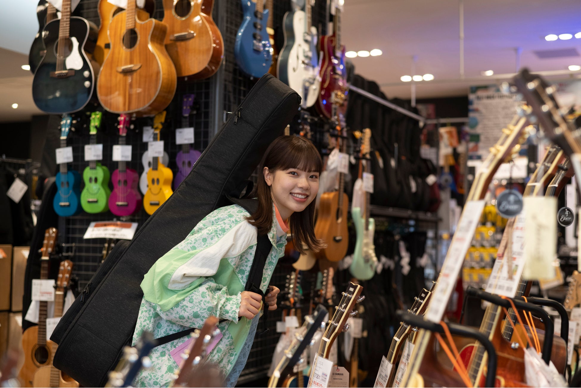 弊社とのお付き合いのなかで「ギターに独学で挑戦し、挫折を味わったことがある」というエピソードを話してくださったことがありました。そんなasmiさんであれば、練習が上手くいかずくじけそうになる気持ちを理解しながらも、今回のプロモーションムービーで表現したかった「上達の過程を楽しむ様子」を自然体で演じていただけると考え、起用いたしました。