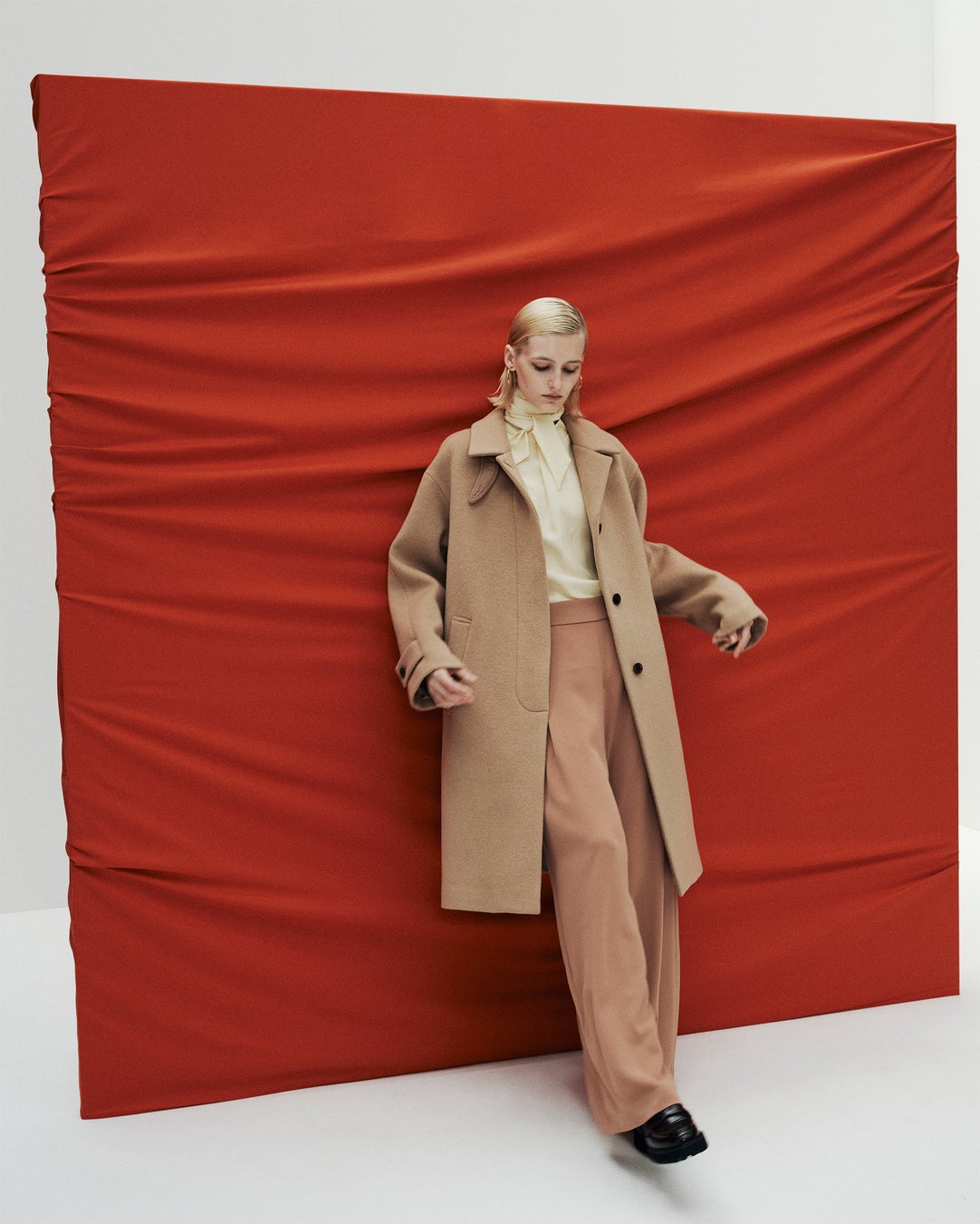 「SOÉJU」2024FALL&WINTERコレクションでは、オーストラリア・ジーロン地方で育てられた羊の上質なウールを使用し、まるでカシミヤのような柔らかい風合いが特徴の、衿もと3WAYで着られるデザインの本格派ベーシックコート「ジーロンラムステンカラーコート」や、纏うだけで佇まいから美しくなるウールコートとして毎年人気の「ウールリバーローブコート」など、大人の女性の日々に寄り添う上質な素材とシルエットにこだわったコートをバリエーション豊かにラインナップしました。