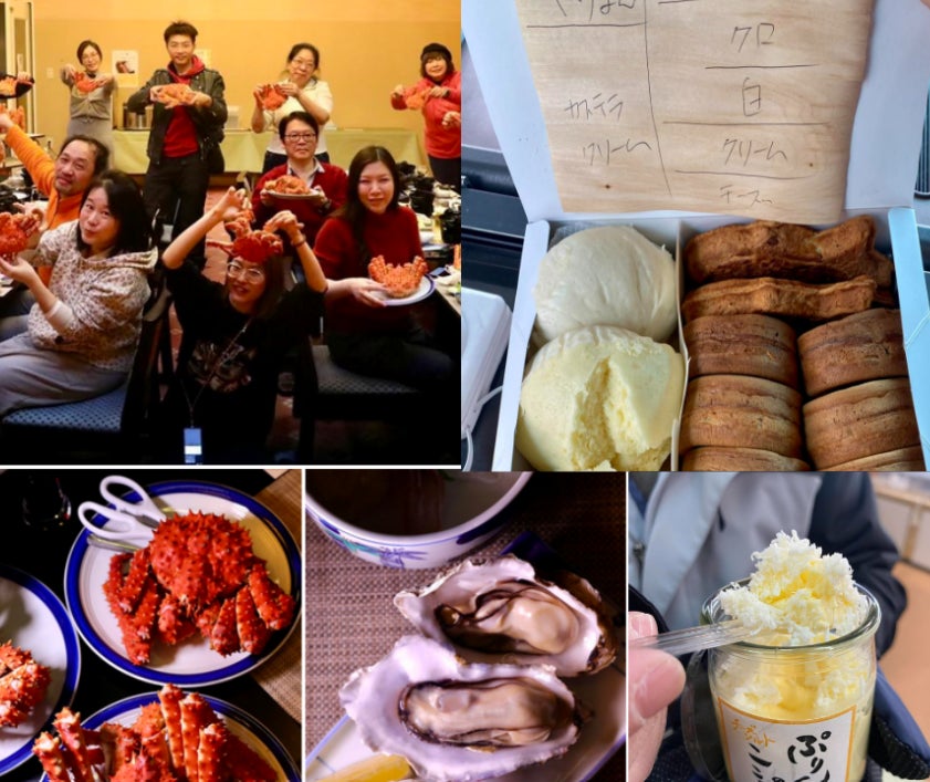 参加者は台湾の起業家、投資家などで構成される15名の募集団体グループ。「他では買えない体験」「美味しいものに出会えて幸せ」「知床原生林に感動」といった声を多く頂いたほか、ツアー中はその場で食べられる牡蠣、流氷ソフトクリーム、プリンなどの他、レストランで販売されているお土産用食品も含めて乳製品、チーズ、魚介加工品などおおよそ1人10万円以上の買い物をしていました。