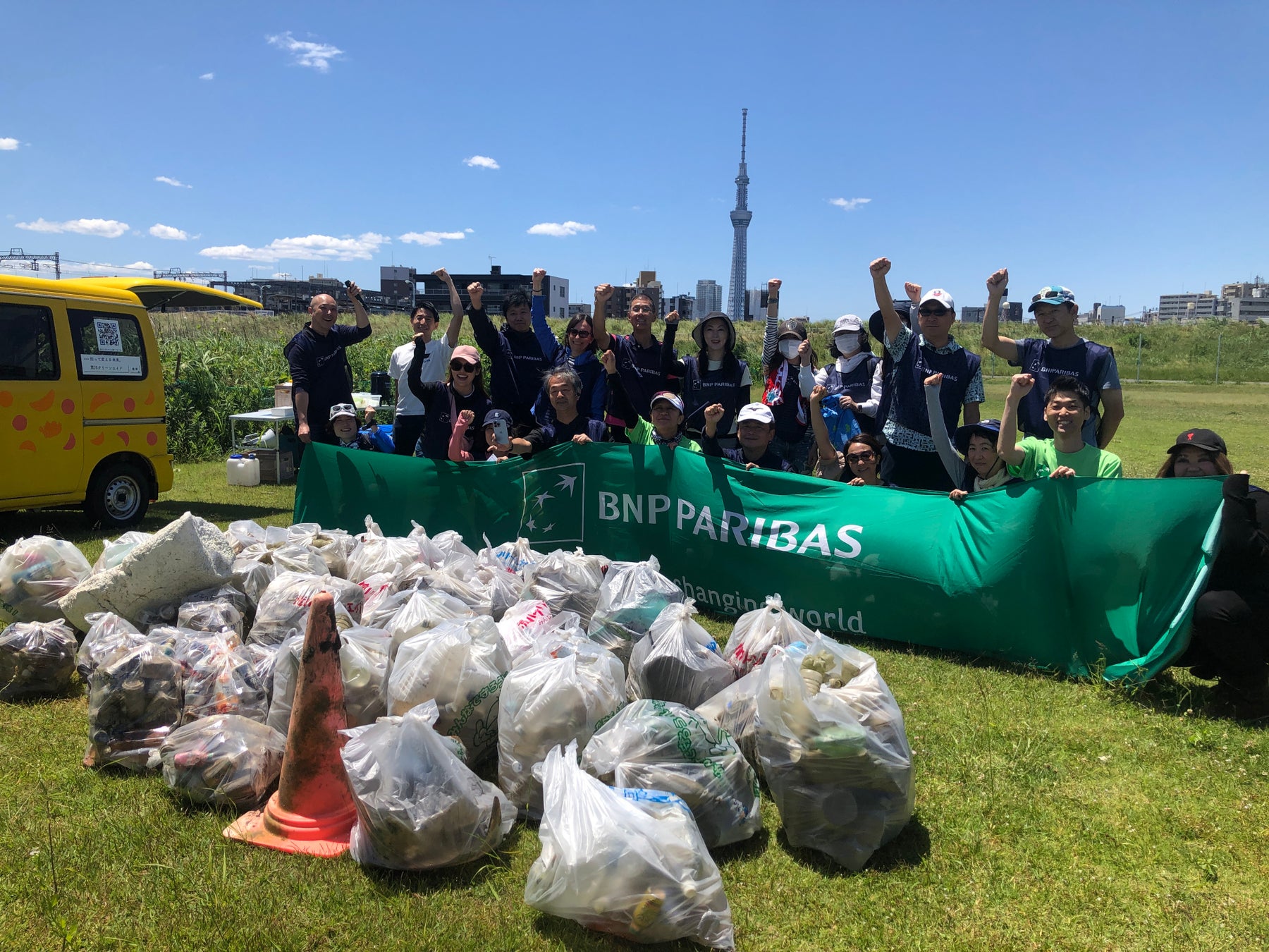 社員一人ひとりが持続可能な未来を創造するきっかけとして、BNPパリバでは今年5月に日本でボランティアウィークを初開催し、活動のひとつとして荒川の清掃を行いました。