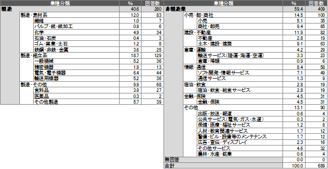 | 回答数・回収率 | 回答数689社・回答率13.8% (回答企業の概要は6ページに記載) |