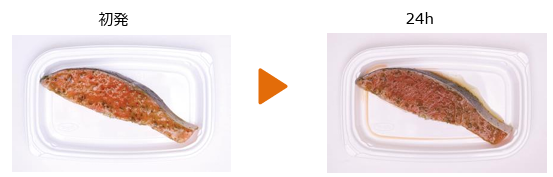 ▽漬け込み経時耐性イメージ(BKバジルオイルソース・冷凍甘塩鮭での経時変化)