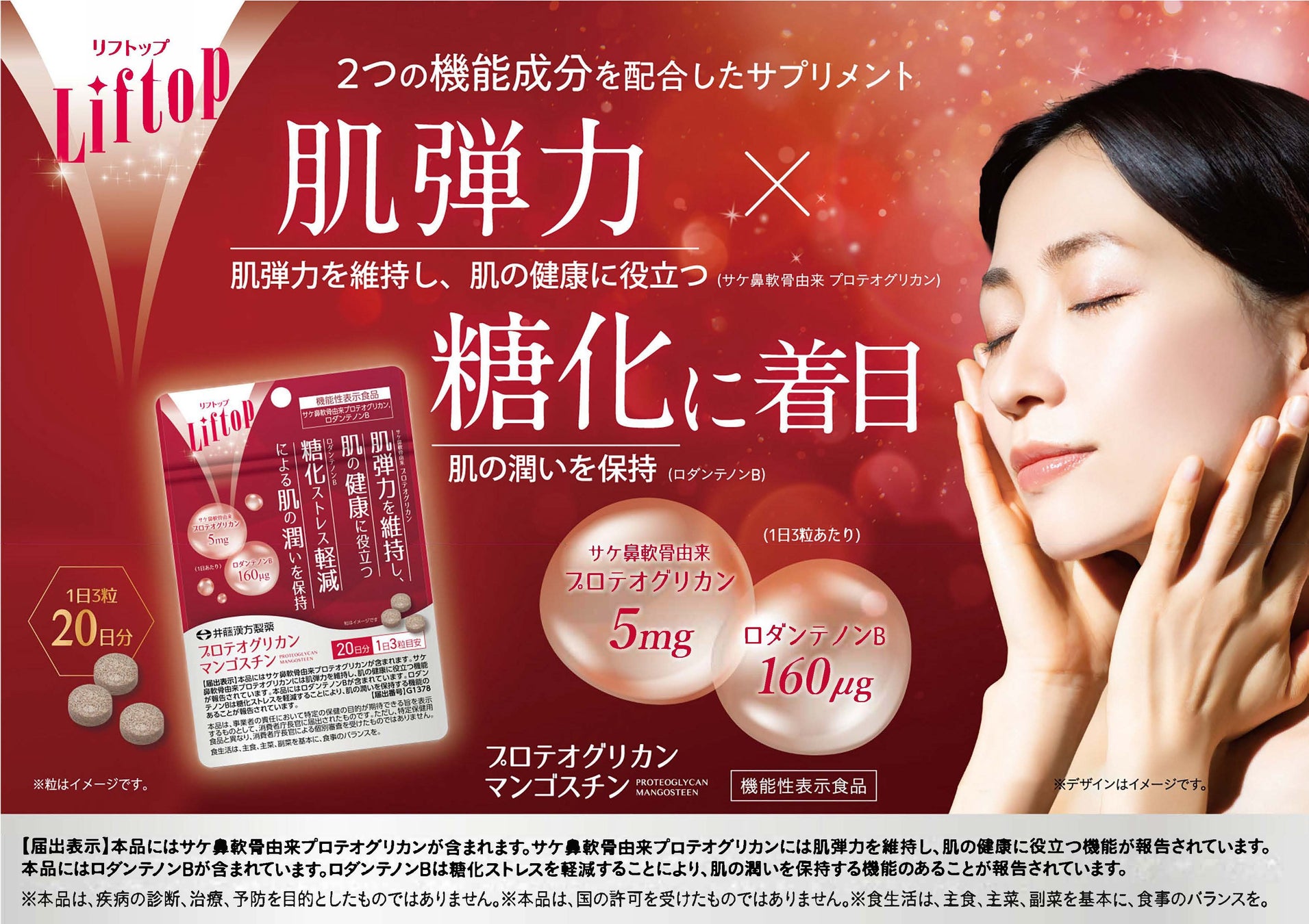 肌の健康と糖化に着目。2つの機能性関与成分配合した機能性表示食品「リフトップ プロテオグリカンマンゴスチン」を発売!