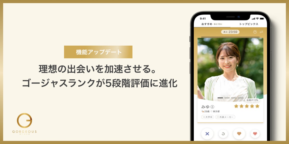 【機能アップデート】理想の出会いを加速させる。ゴージャスランクが5段階評価に進化