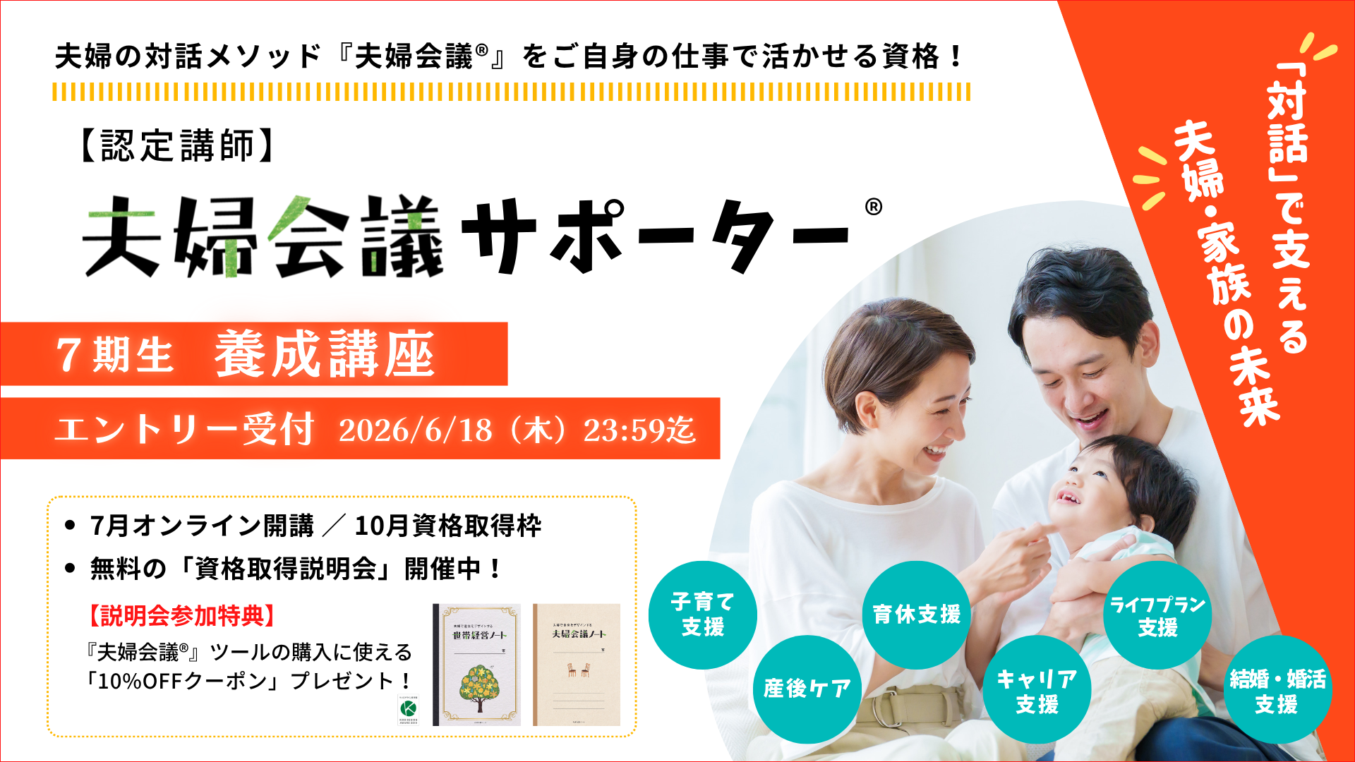 ※認定講師「夫婦会議サポーター」へのエントリーに際して、資格取得説明会への参加は必須ではありません。