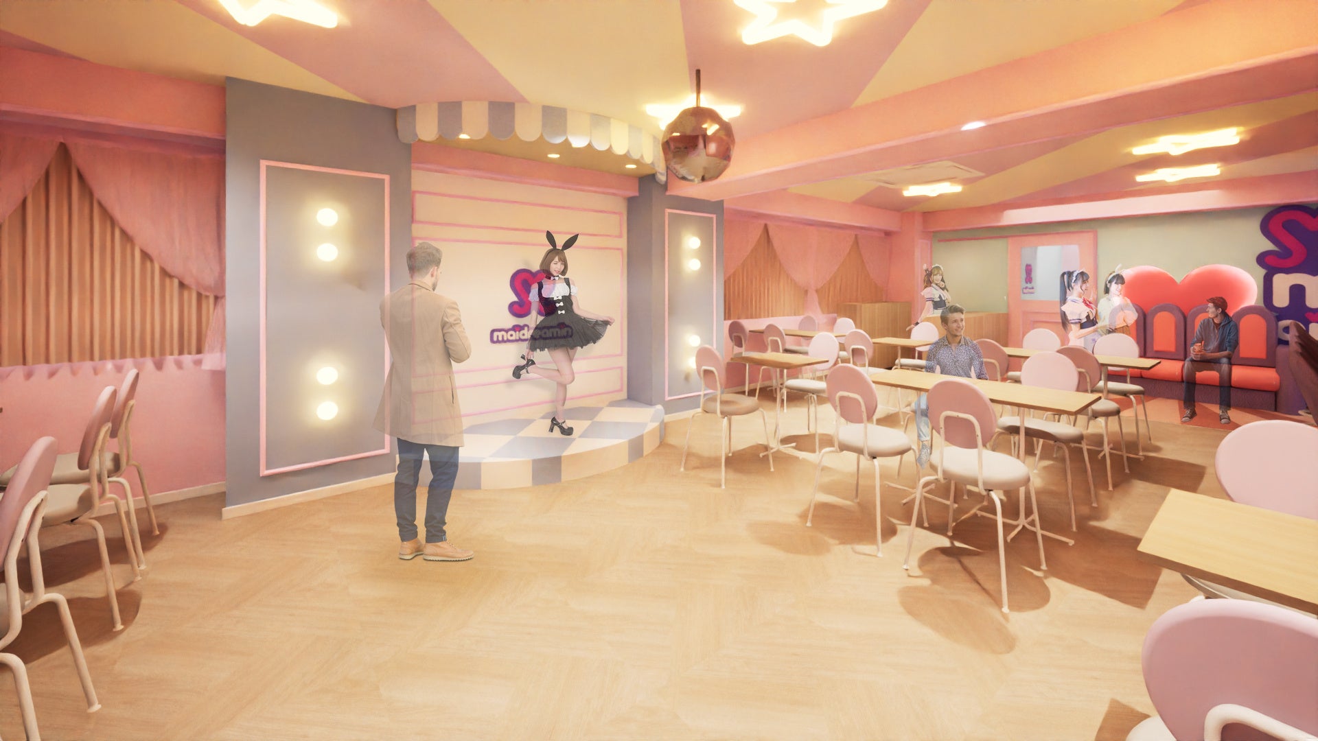 平日・土曜日20:00以降に営業する「maidreaminHYPER」時には照明が大人な雰囲気に!