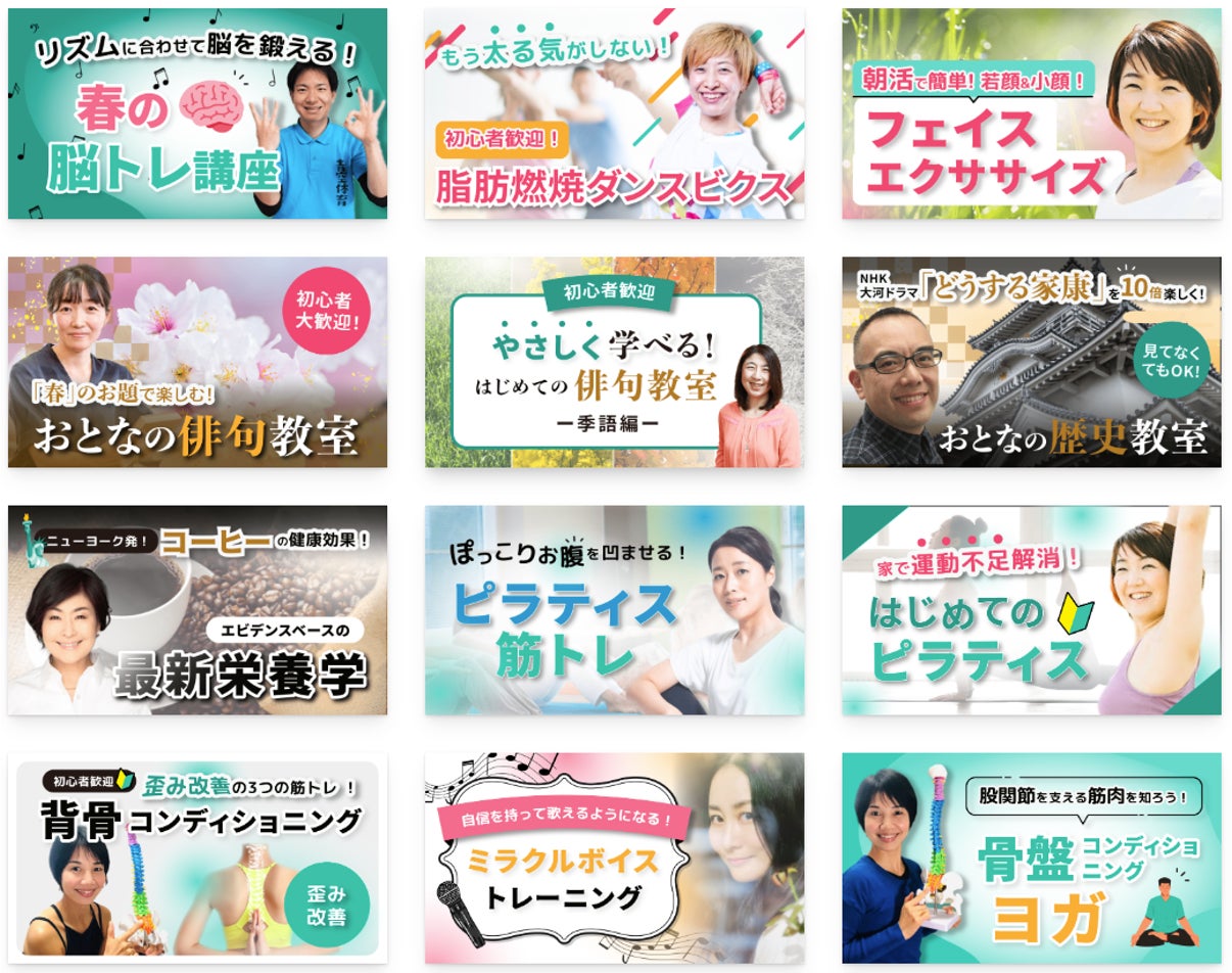 新しいことに抵抗がある方に対して、ヨガや俳句、脳トレなどの豊富なレッスンを手軽に受講できるサービスを提供することで、より多くのシニアの方が新しい趣味を始めるきっかけづくりを行います。