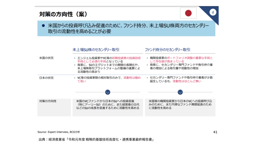 また、経産省も海外の大型VCを日本に呼び込むために、ひいては日本のスタートアップ市場の活性化のためにはセカンダリー市場の活性化が重要であると述べています(図3)。