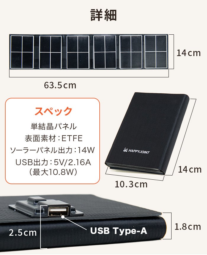ソーラーパネル出力:14W