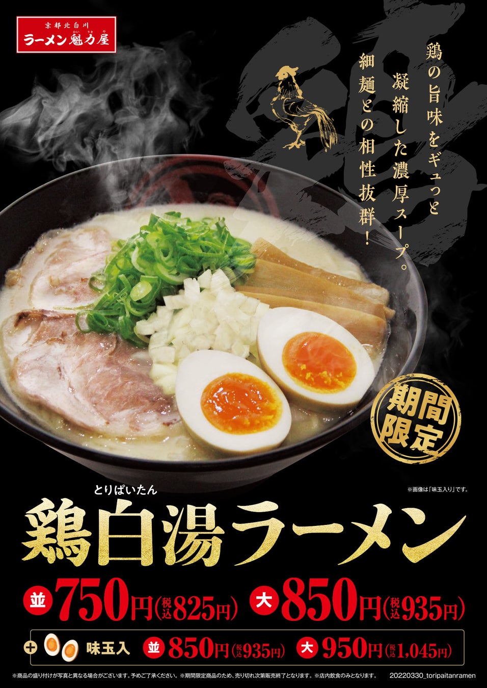 今年は鶏の旨味がさらにUP!旨味凝縮!「鶏白湯ラーメン」登場!