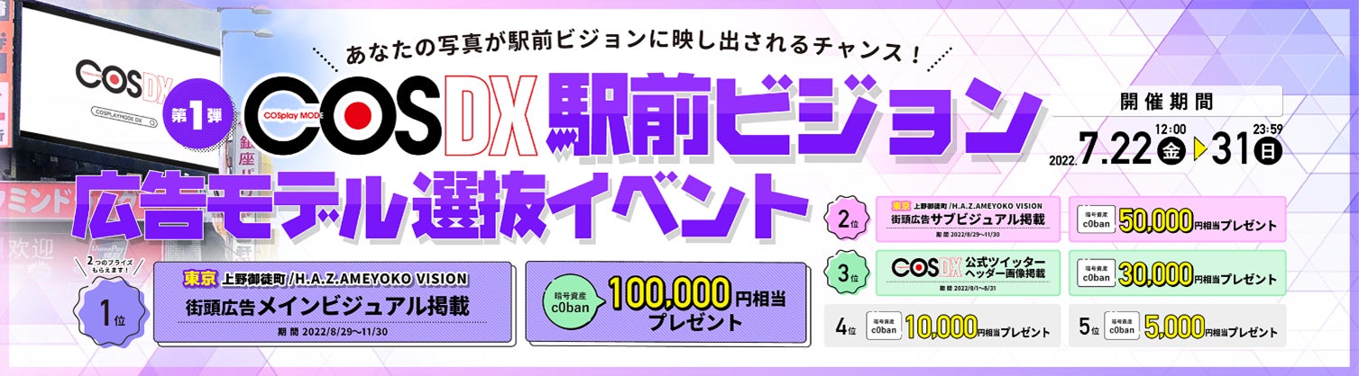 コスプレ特化ライブ配信×NFT販売プラットフォーム【COSPLAY MODE DX】駅前ビジョン広告掲載イベント開催のお知らせ