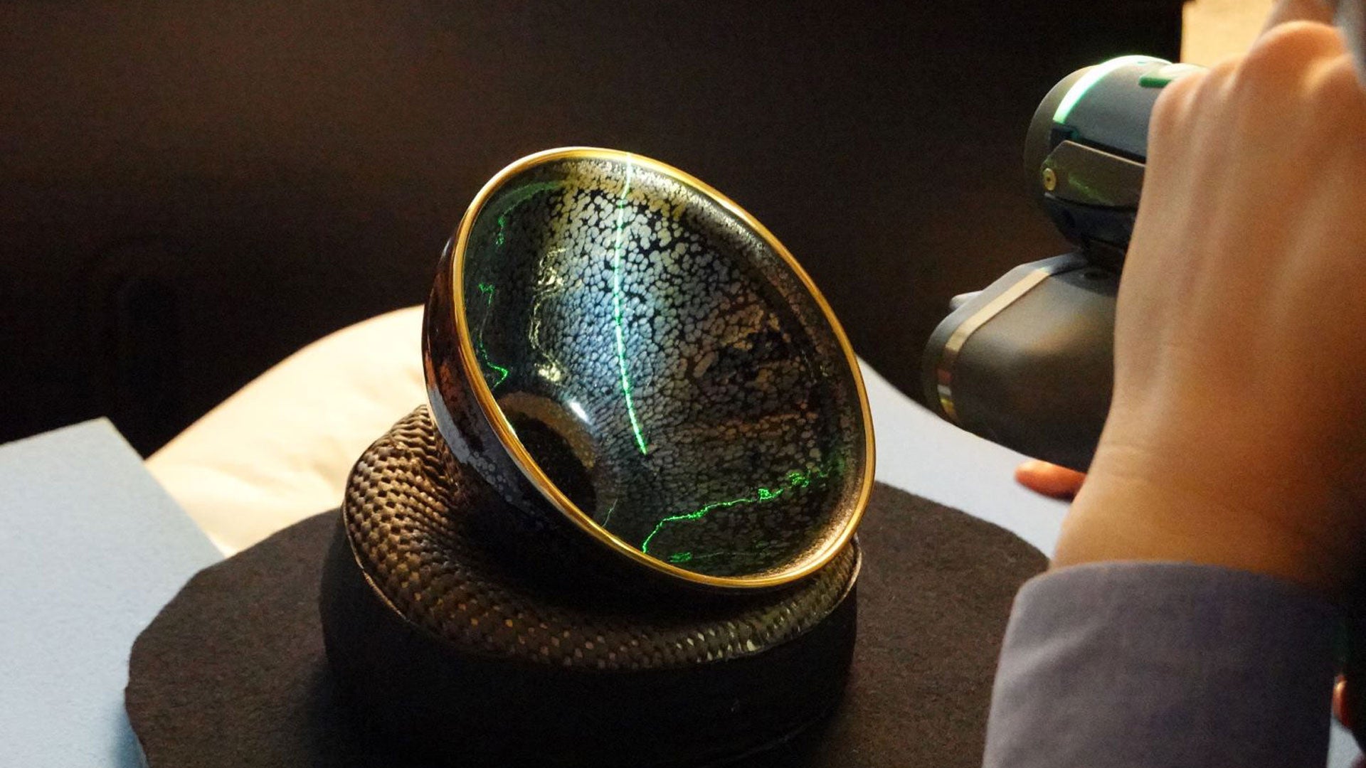 大阪市立東洋陶磁美術館所蔵の「国宝 油滴天目茶碗」を肉眼ではとらえられないほどの細部、そして光のあたり具合で変化する色彩の不思議を最新のデジタル映像技術で表現。スキャニングデータから3Dプリンターで生成した茶碗に「触れる」ことで、高解像度映像をリアルタイムで自在に動かせるインタラクティブ体験を実現し、国宝の最大の特徴である「油滴」を体感します。