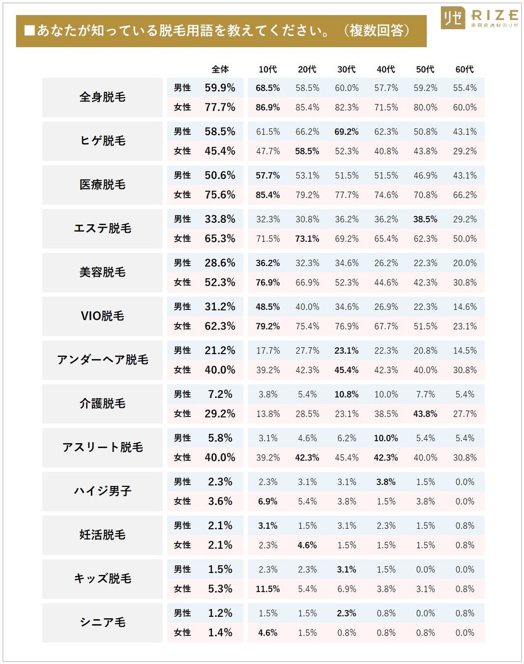 性別や世代による各部位別でのケアの差とあわせ、脱毛用語の認知度、脱毛に求めるメリットほか「2022年の脱毛に関する現状とトレンド」を徹底調査しました。