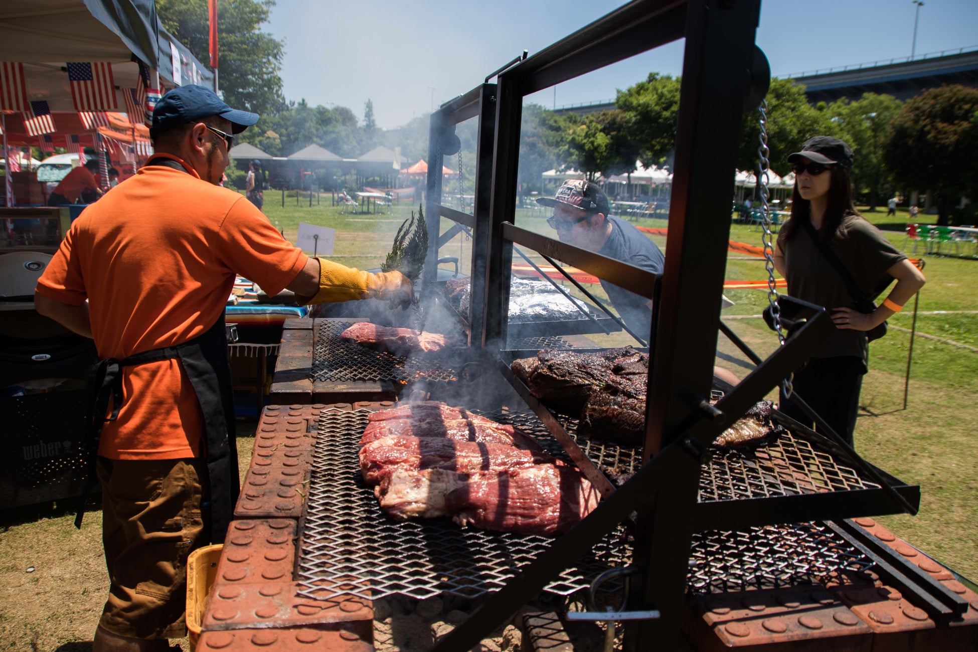 本イベントのために設置する特製のバーベキューピットは、普段目にする機会のない昇降式グリル。ヒーロー屈指のピットマスターが塊肉を焼き上げるパフォーマンスは一見の価値あり!です。