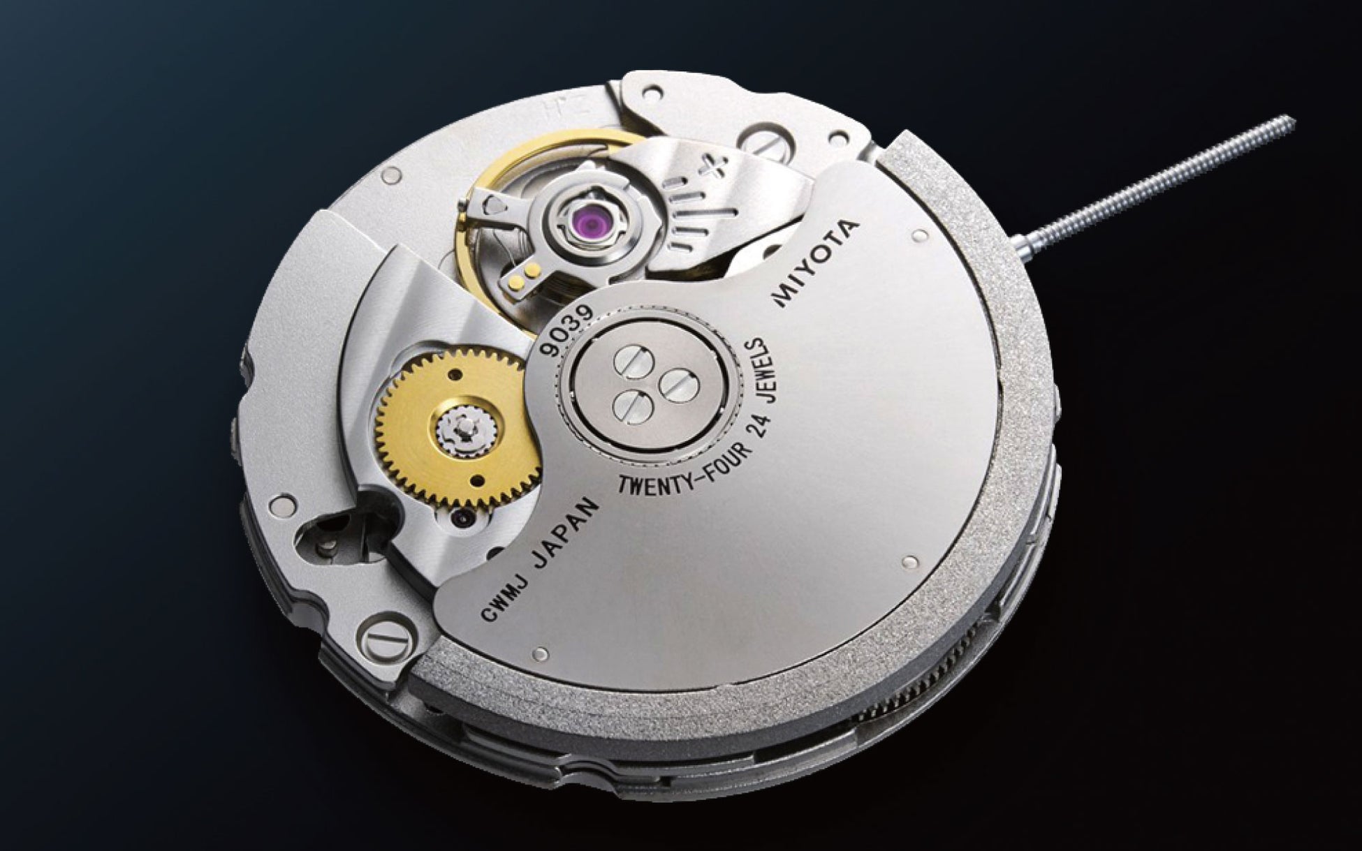 MIYOTA製自動巻 9100 秒針規制機能、28,800振動/26石 パワーリザーブ・月・日付・曜日・24時間計 日差0〜+15秒(自社で調整) 最大巻上42時間以上 |
