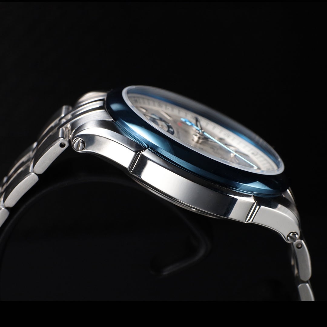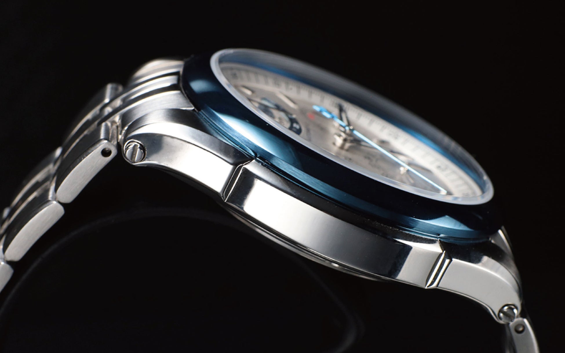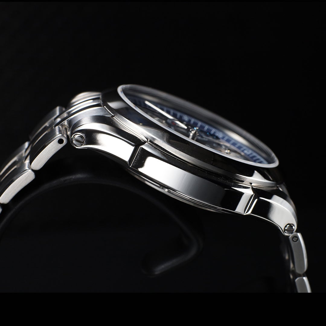 ケース径41mmのバランスの取れたプロポーションに、太めのラグが力強いスポーティーさを与えつつ、全体としてはエレガンスを感じさせるケースデザイン。SUS316Lステンレススチールの上質な質感に、両面カーブサファイアガラスと無反射コーティングを組み合わせ、高い視認性と洗練された佇まいを両立しています。