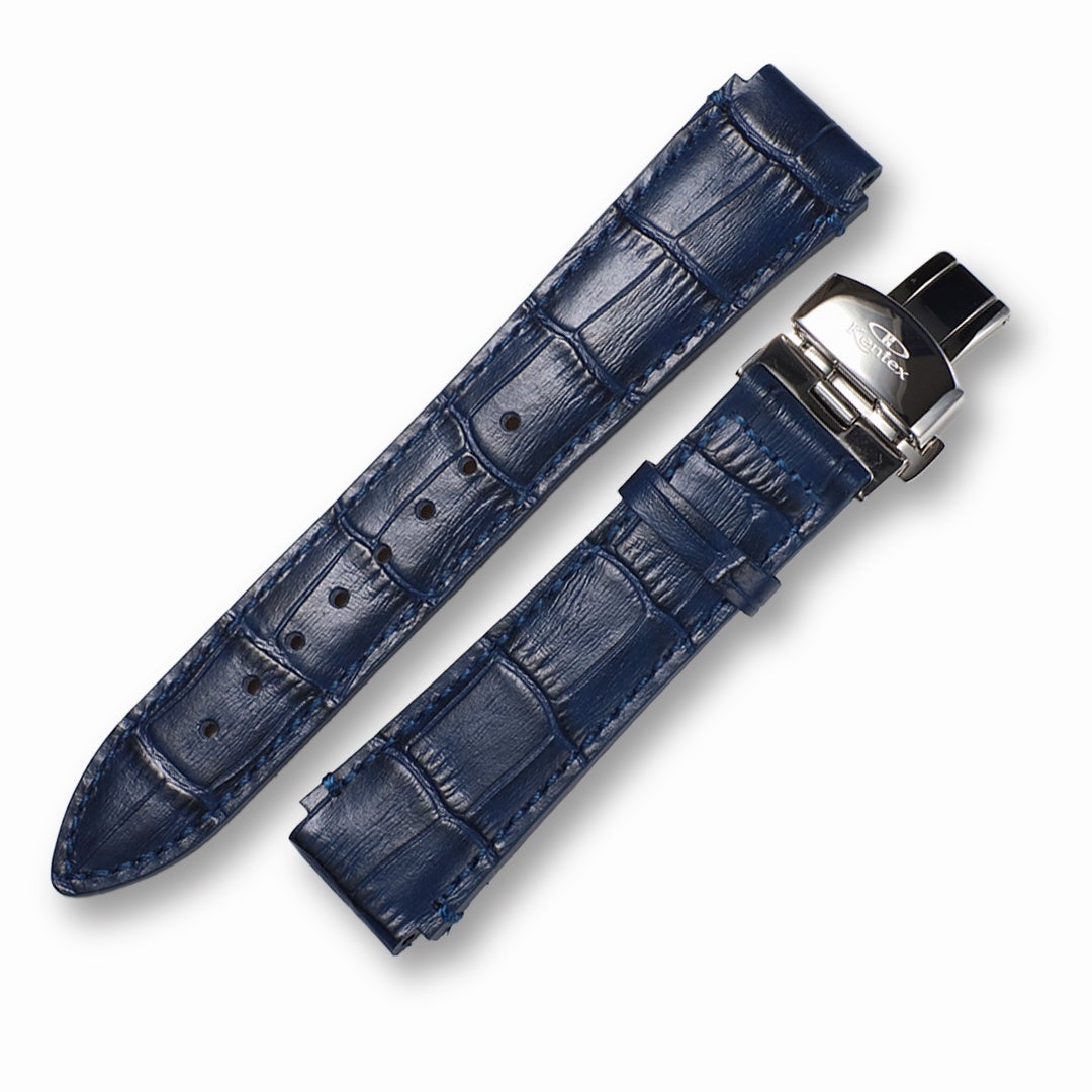 レザーベルトには、ダークブラウンの型押しクロコ調カーフレザーを使用。上質な艶感が時計全体の品格を引き立てます。バックルには、革を傷めにくく着脱もスムーズな、バタフライ式Dバックルを採用しています。