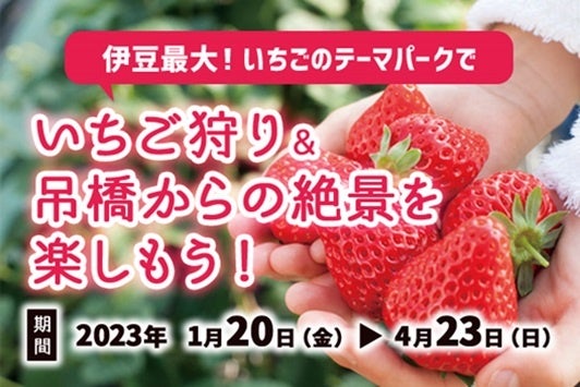 全長400m、日本一の歩行者専用吊橋「三島スカイウォーク」では、2023年1月20日(金)~4月2日(日)まで、静岡県の名物いちご「紅ほっぺ」を贅沢に使用した期間限定スイーツが味わえる2023年「いちごコレクション」を開催します。