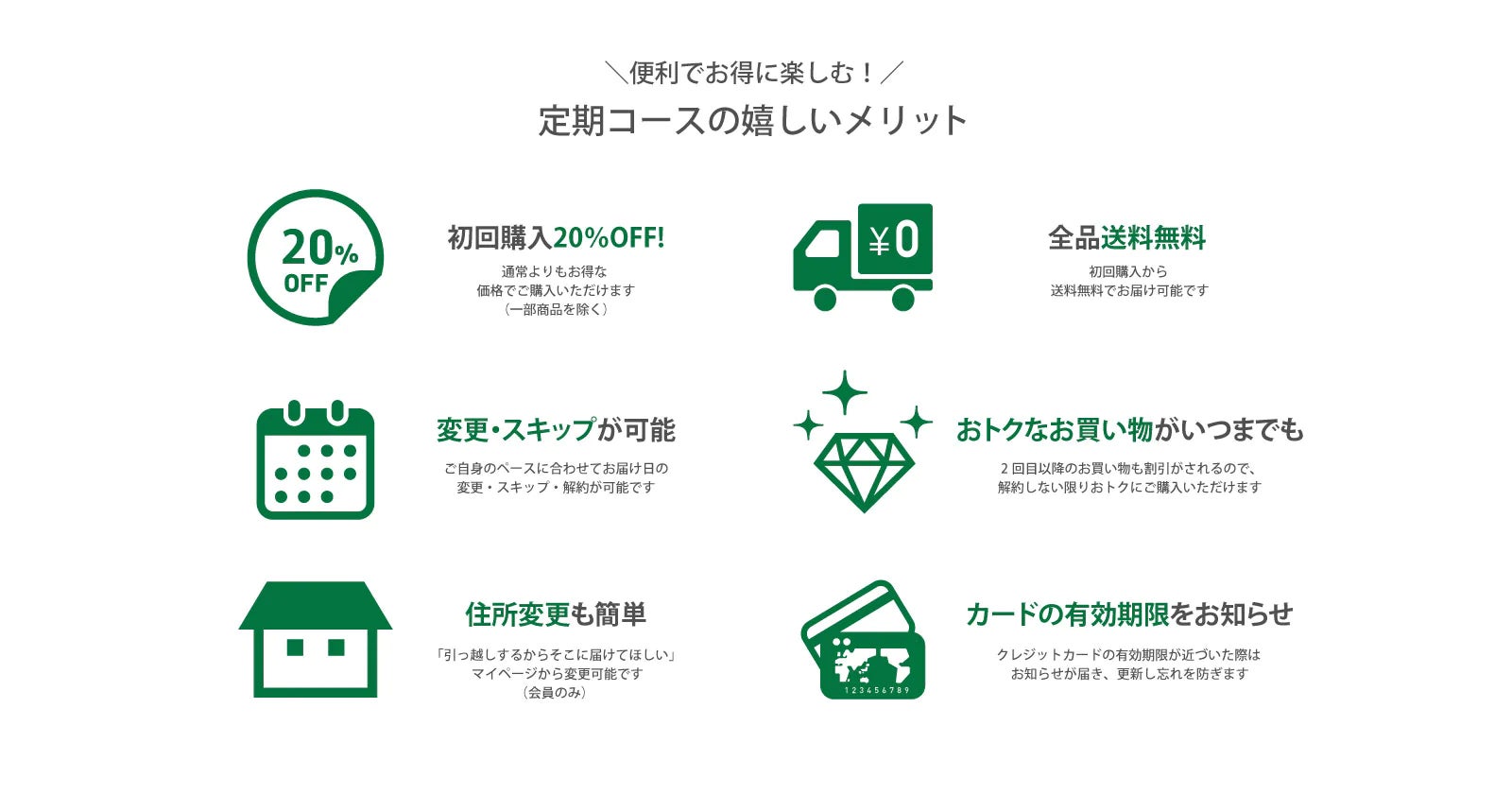 ~送料無料で変更・スキップOK!初回最大20%OFF、2回以降も最大15%OFFを実現~