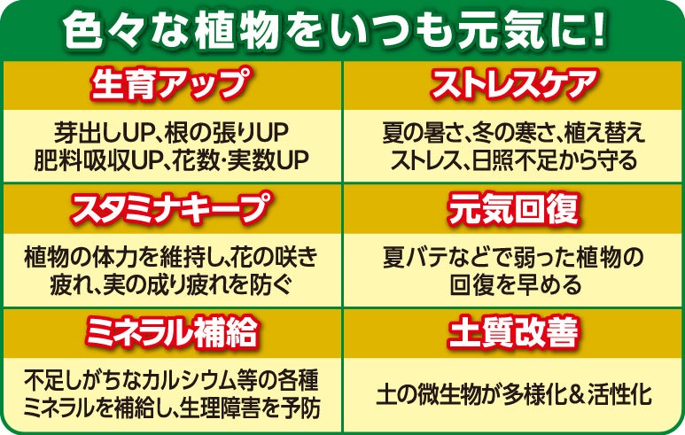 ●環境ストレスに負けない元気で丈夫な植物を育てる5つのパワー成分を配合
