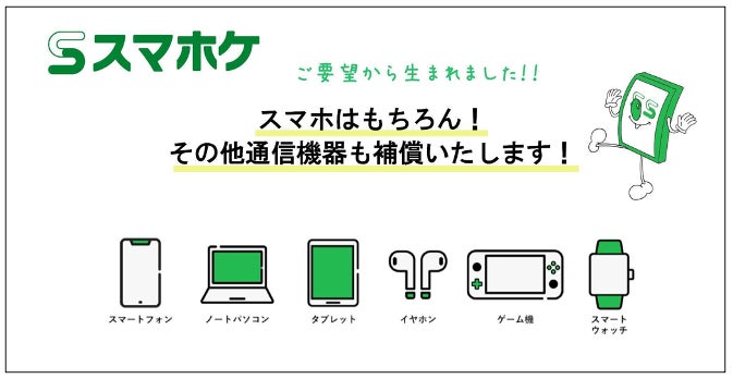 スマホ同様、月々100円から加入できる「スマートウォッチ、ワイヤレスイヤホン、ゲーム機」に、特にご要望の多かった「パソコン、タブレット向けのオプション付きセットプラン(月々400円)」を加え、身近なITツールに幅広く対応してまいります。 お申し込みは、オンラインで簡単完結。新品に限らず、いつでもご加入いただけます。 補償させていただく保険金額は、対象製品ごとに年間通算最大10万円までとなり、オプションサービスの補償には免責金額がございます。 詳しくはhttps://sumahoke.jp/をご確認ください。