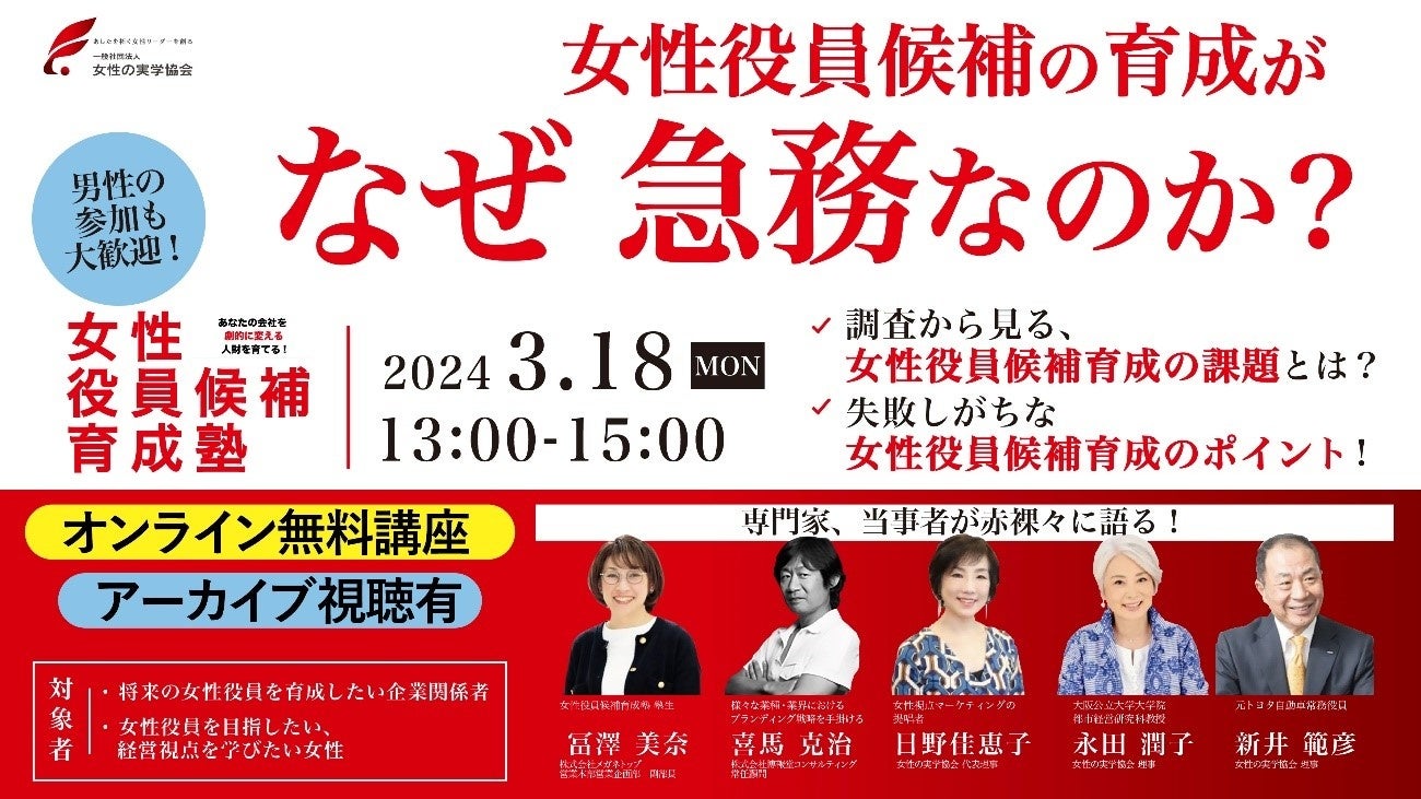 優秀な女性社員ほど辞めていませんか。「女性役員候補の育成がなぜ急務なのか」3/18無料解説講座の開催!