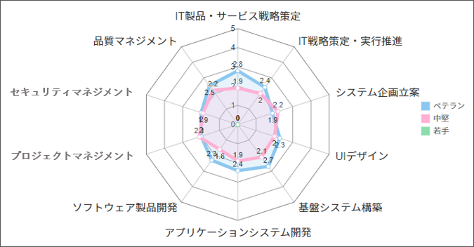 スキル習得状況をレーダーチャートで確認することが出来ます。