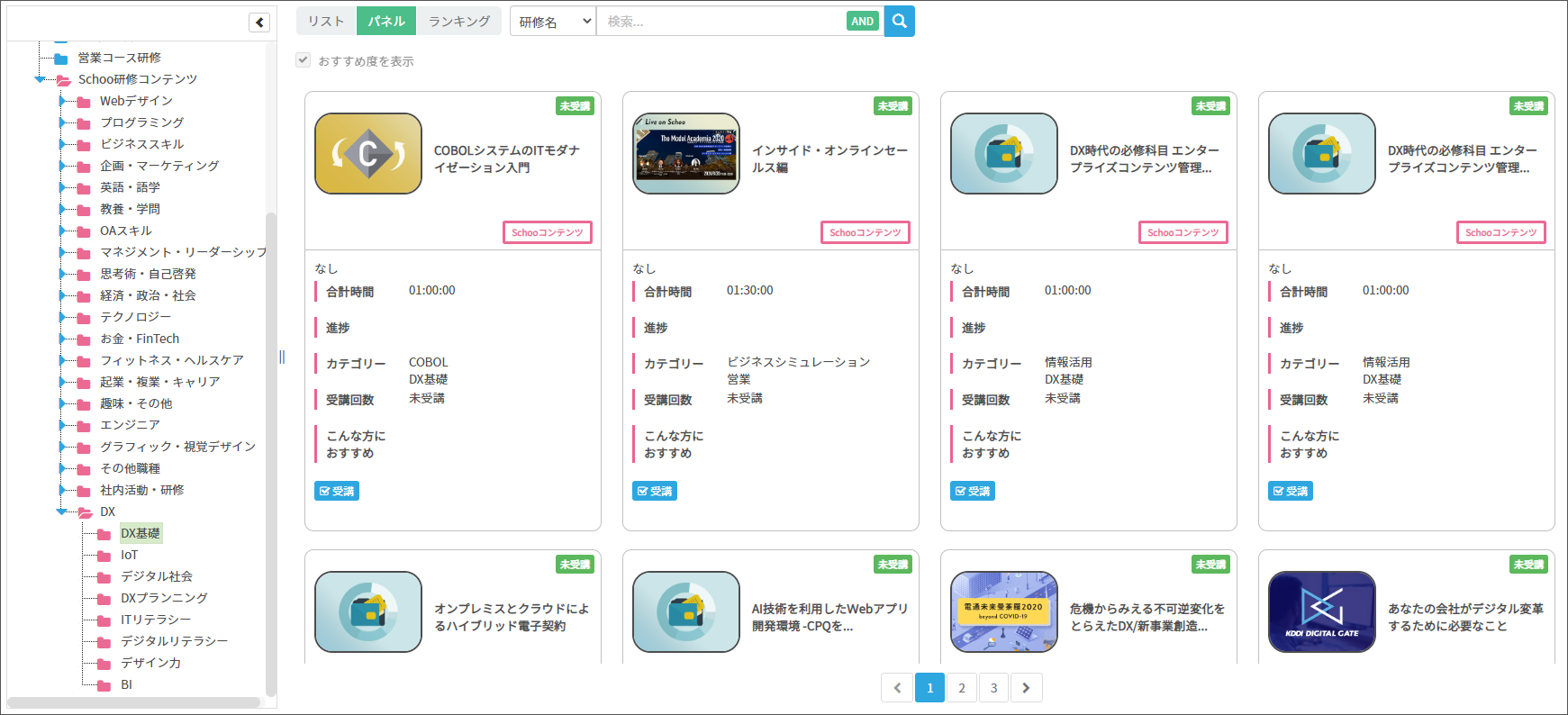 また、Schoo社の提供する「Schoo for Business」ともシームレスに連携可能(要別途オプション契約)で、DX人材育成コンテンツなど、7,000を超える新鮮かつ豊富な研修コンテンツで社員の育成が可能です。
