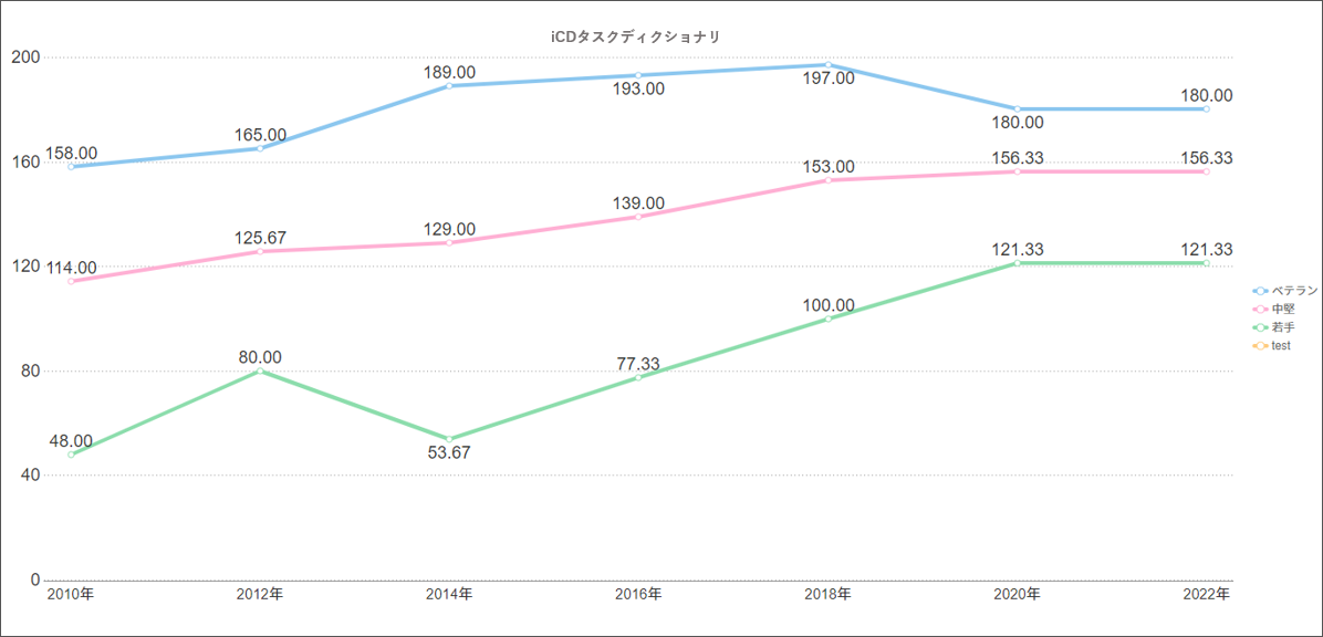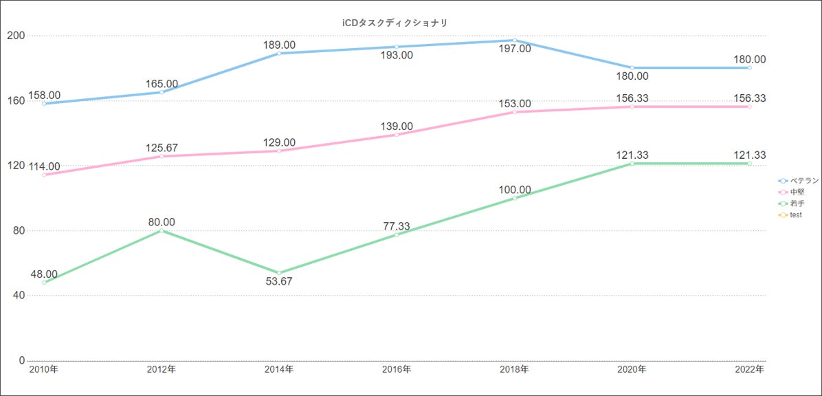 iCDタスクディクショナリは、1つのタスク(スキル)が複数の職種にまたがって定義されていますが、入力したスキルレベルは全職種に対して共有されるため、職種を切り替えて何度も重複入力する必要がありません。